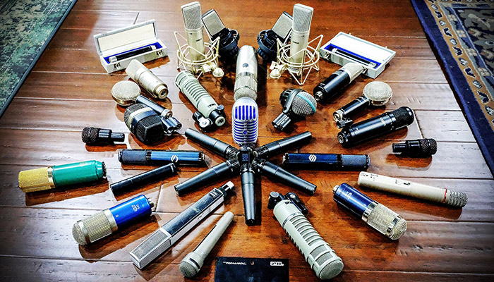 Just some of the mic choices from Neumann, AKG, EV, Royer, AEA, Gefell, Beyer, Sennheiser, Shure and Warm Audio